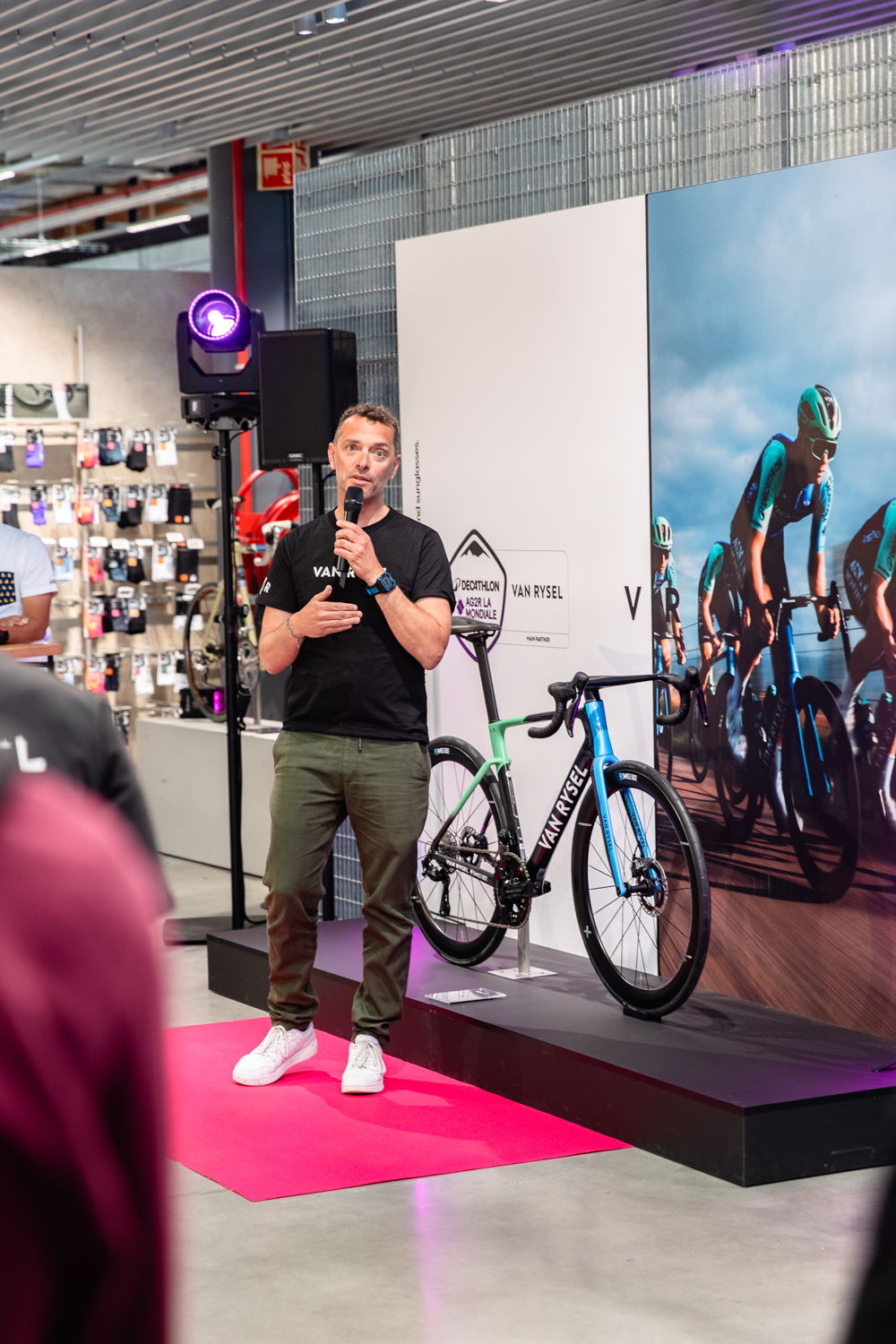 "Le temps où un vélo se résumait à un cadre et deux roues est révolu. Du cadre aux vêtements, en passant par tous les accessoires possibles, nos ingénieurs produits, en collaboration avec les coureurs, recherchent chaque nouvelle avancée qui fera la différence. Grâce à une gamme toujours plus étendue et répondant aux exigences les plus élevés – vélos, textile, lunettes, roues – la première boutique Van Rysel rend la performance pro plus accessible que jamais aux cyclistes amateurs." Pierre Delcour, Leader Van Rysel Belgium